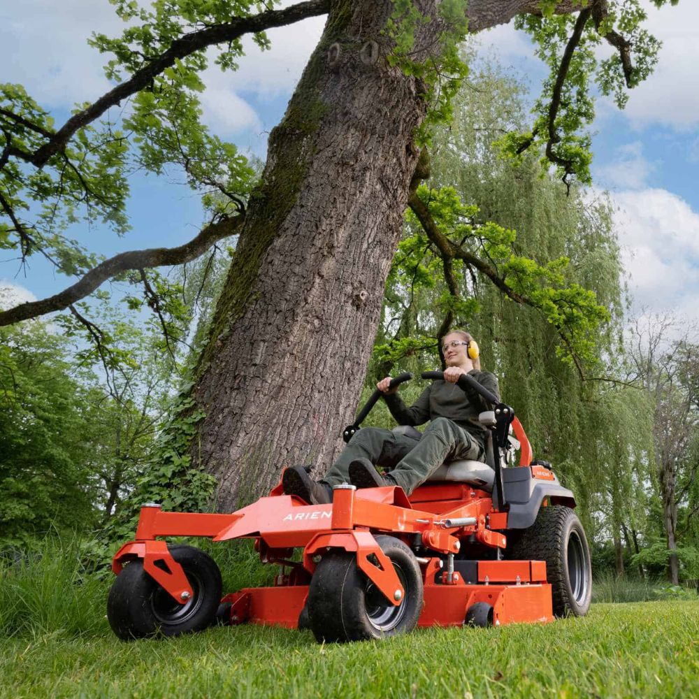 This mower uses Hydro-Gear® ZT-3100 professional transaxles, ensuring smooth and responsive drive performance. This improves manoeuvrability and efficiency. The large tyres provide excellent traction and stability. This ensures reliable performance across demanding terrain.