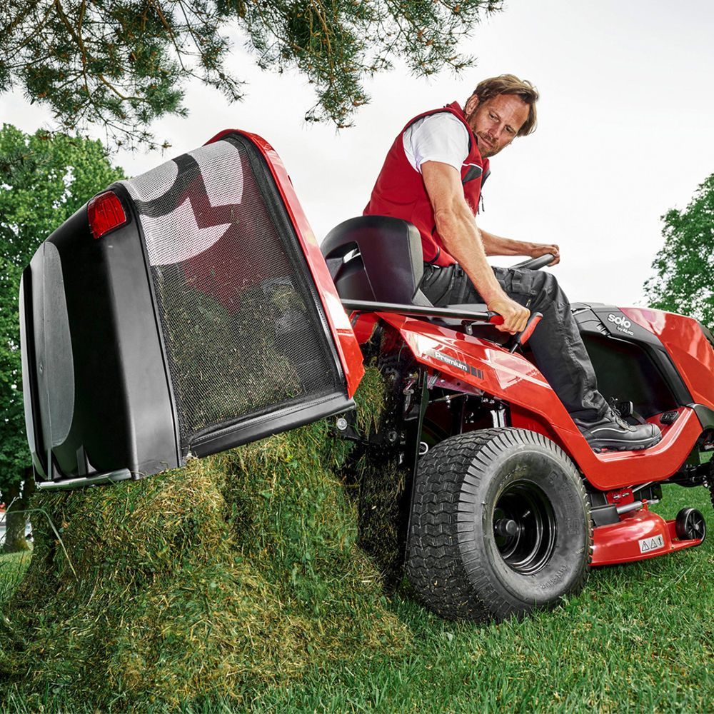 The solo by AL-KO T 22-105 HD-A V2 Premium lawn tractor is the ultimate tool for maintaining your lawn with ease. Designed by German engineers, it offers exceptional versatility with its 3-in-1 functionality, allowing you to mulch, collect, or rear discharge clippings to suit your specific gardening needs. The included tool-free mulching kit enhances convenience, while the 310-litre grass catcher minimises interruptions by holding more clippings. The catcher features an audible alert when full and can be emptied effortlessly using a telescopic lever, ensuring efficient mowing every time.