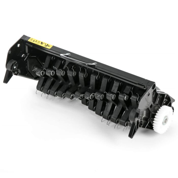 Part of Allett's innovative interchangeable quick cartridge system (QC), the QC17SC lawn scarifier cassette will turn compatible Classic 17L and Kensington 17B cylinder lawnmowers into a powered rake system. It will successfully clear moss, thatch, and debris from the lawn, promoting healthy growth and a luscious green lawn. The rotary spring tines operate gently and facilitate safe cultivation even where tree roots may be close to the surface. It is suitable for year-round use, and will achieve great results if used regularly.
