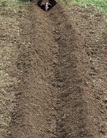 The V shaped body of this ridger penetrates the soil and breaks up the surface. Two adjustable mouldboards hinged to the body push the earth off to the side, creating wider furrows than the BCS trailed ridger – between 10 cm (4 inches) and 40 cm (16 inches) in width. The working width is easily adjusted, and the working angle simple to offset.