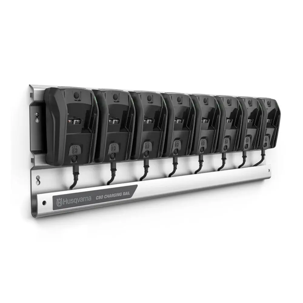 Charge up to eight Husqvarna BLiX 36V batteries with the 40-C80 Charging Station. Featuring quiet, fanless operation, flexible mounting, and easy setup, it’s a space-saving solution that ensures your tools are always ready for use.