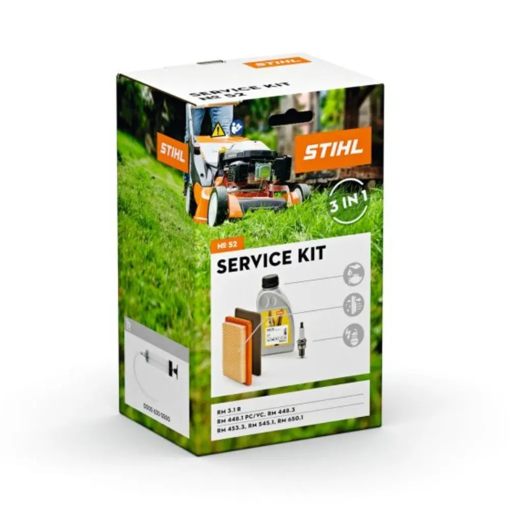 Maintain reliable engine performance with the STIHL Service Kit 52 for EVC 300 engines. Genuine air filters, spark plug, and engine oil ensure smoother running, easier starting, improved efficiency, and long-term protection for compatible lawn mowers and tillers.
