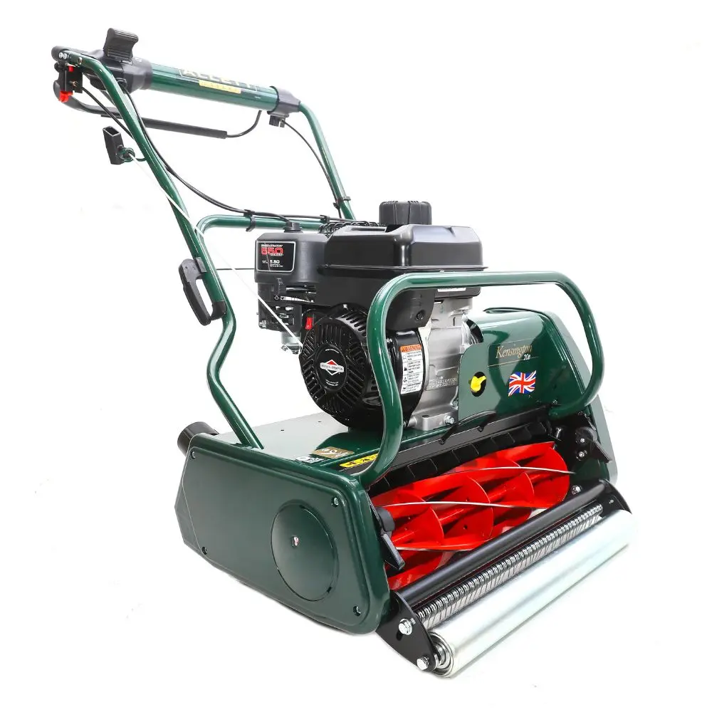 The Allett Kensington 20B is a premium petrol lawnmower with a 51cm cutting width, six-blade cylinder, full roller system, and 70-litre grass box. Offering a choice of top-tier engines and QX cartridge compatibility, this superior self-propelled mower is expertly designed for lawns up to 900m².