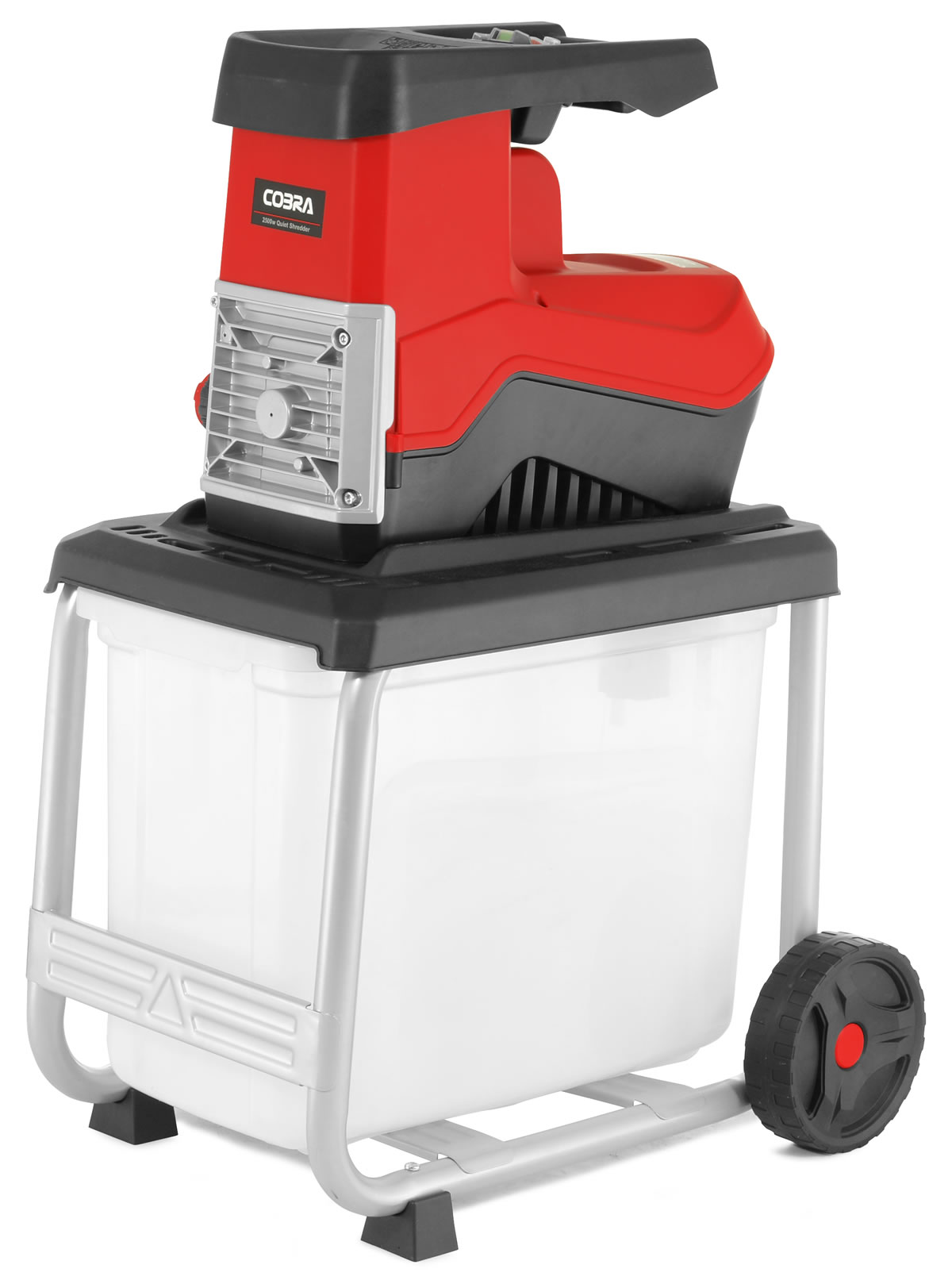 Quiet drum Shredder is powered by a 2500W motor and is ideal for shredding garden waste up to 40mm in diameter. Supplied with a practical plunger for increased throughput on heavier loads.
