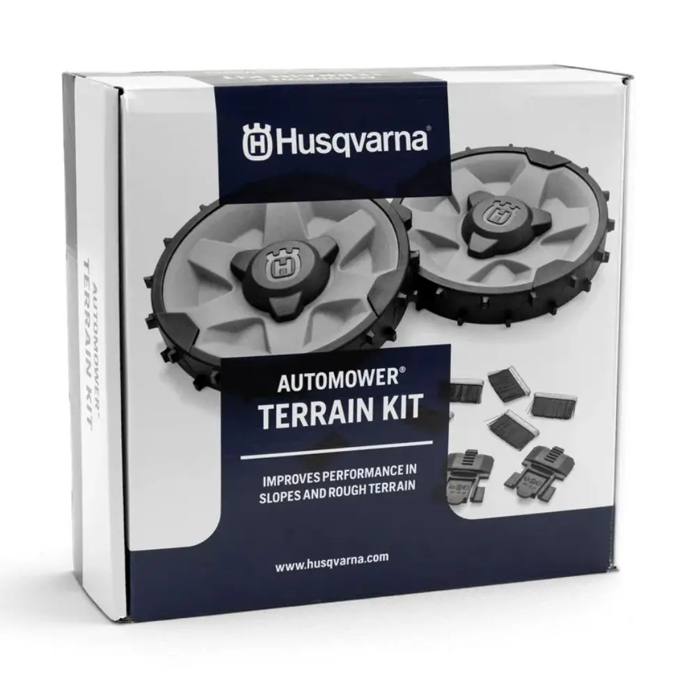 Automower® 405X comes with a charging station and a 10 metre long voltage cable for plugging it in, and a spare pack of 6 blades. An installation kit is required but isn’t included; the size required depends on the size and topography of the lawn.