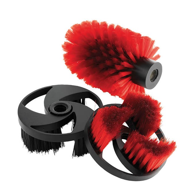A rotating brush attachment with three different brushes for cleaning soft, hard, and difficult areas. Compatible with Husqvarna PW 125 – PW 350 pressure washers.