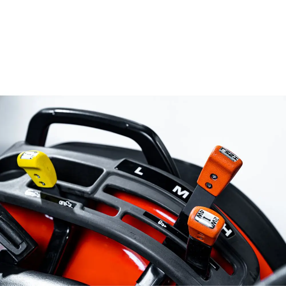 Safety is enhanced by features such as oil-immersed brakes, an independent parking brake, and a sensor that automatically shuts off the engine if the operator is absent.