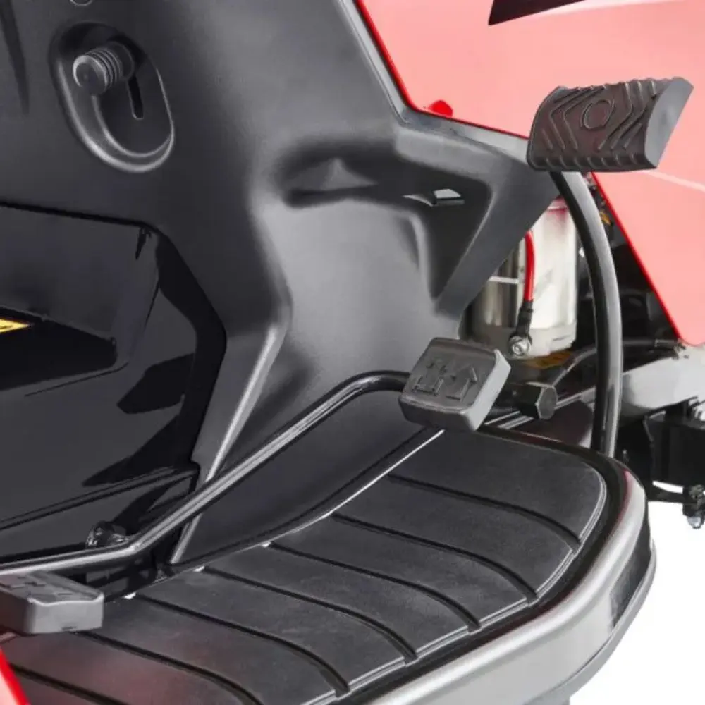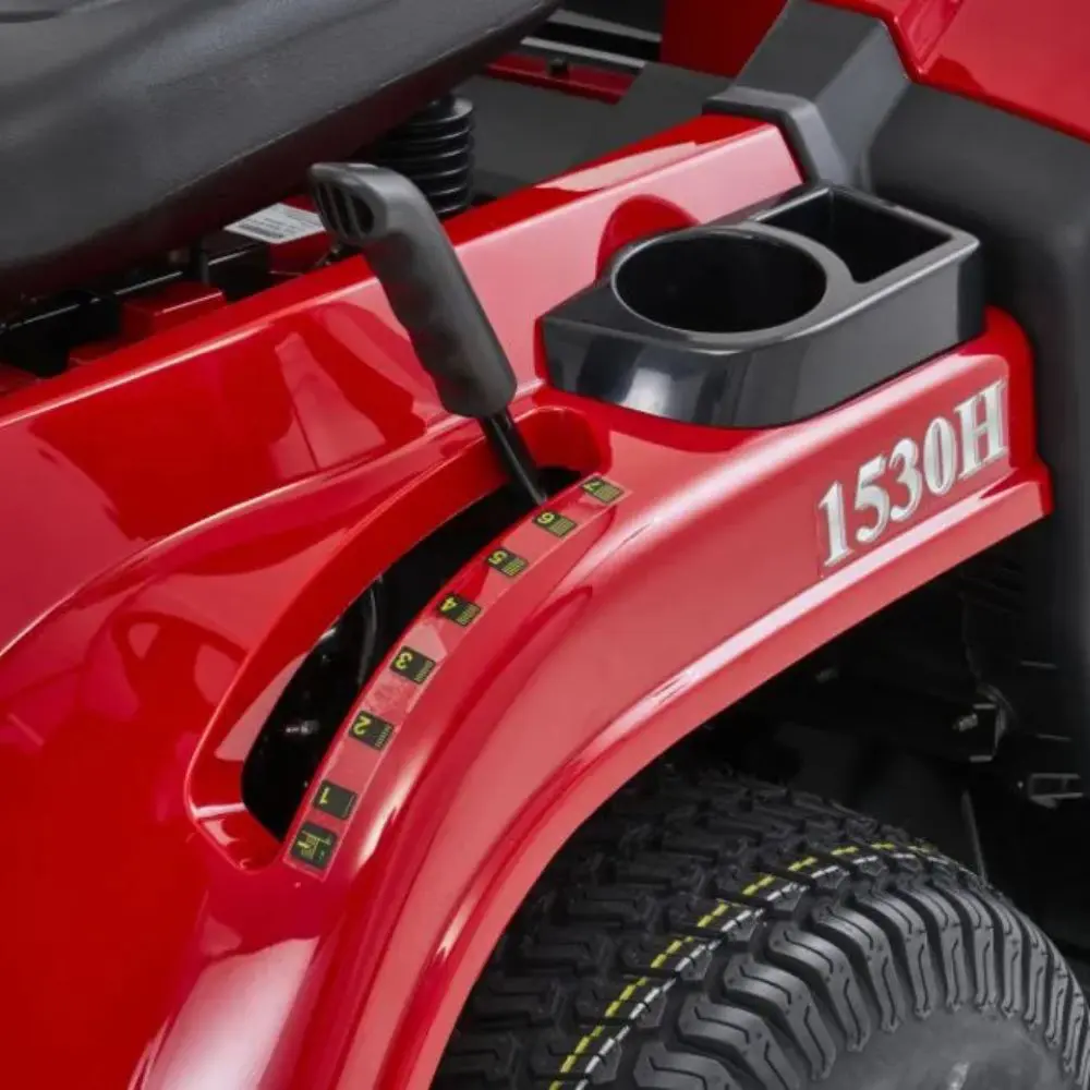 Ease of use is central to the Mountfield 1530H’s design. The pedal-operated hydrostatic transmission allows the driver to move forward and reverse seamlessly without changing gear. This makes manoeuvring around flowerbeds, pathways, or trees almost as simple as handling long open stretches. By eliminating the need for gear changes, the 1530H allows you to focus fully on steering and achieving a precise finish, bringing professional-level lawncare results into your garden.