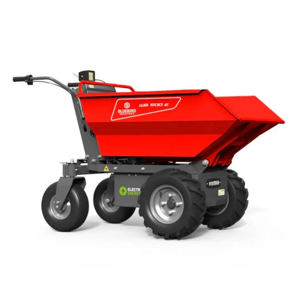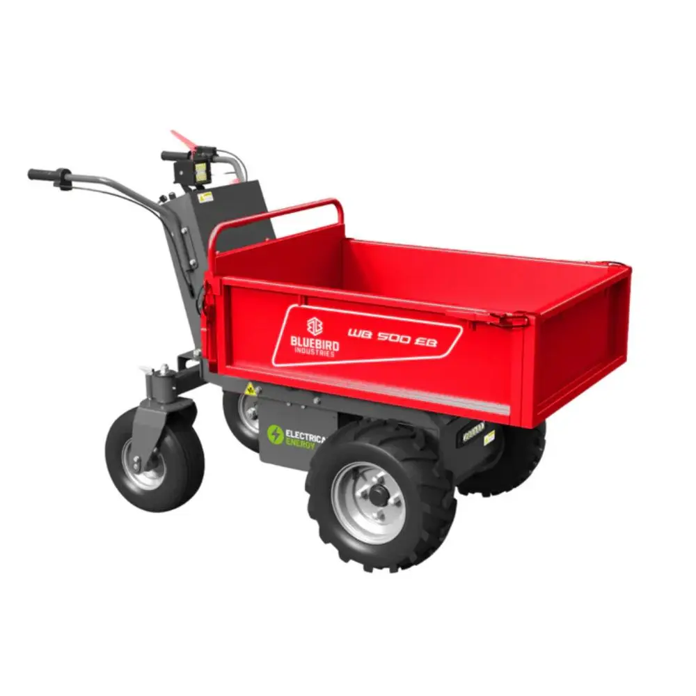 Designed for demanding transport tasks, the WB 500 E combines 48V electric power, extendable dumper sides, and rear steering control, providing reliable, low-effort movement of heavy loads indoors and outdoors across a full working day.