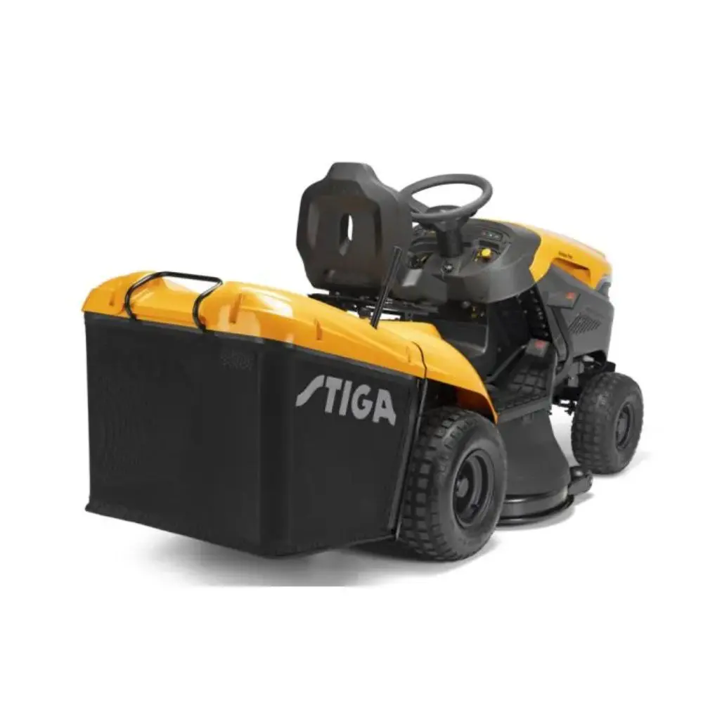 The STIGA Estate 798 boasts a 98 cm twin-bladed reinforced cutter deck, providing an efficient and precise cutting performance. With seven manually adjustable cutting height positions ranging from 30mm to 90mm, it adapts to varying grass lengths and conditions. The blades’ winged design ensures a clean, even cut, leaving your lawn looking pristine. In addition to collecting clippings, the Estate 798 also offers rear discharge and mulching options, giving you complete versatility in lawn maintenance.