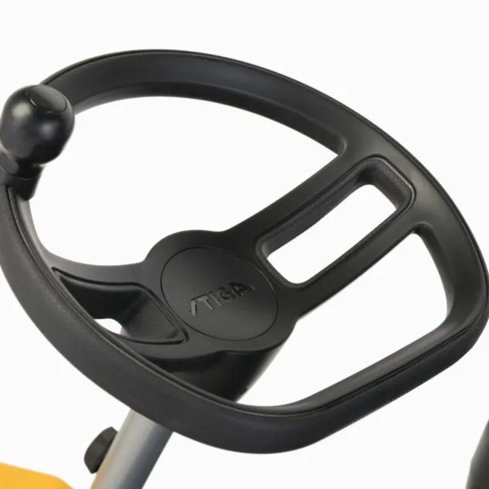 Designed with user comfort in mind, the Park 500 W includes an ergonomic seat with lower-back support, making longer mowing sessions comfortable. Its spacious legroom makes it easy to get on and off the mower. The adjustable steering wheel, equipped with a convenient spinner, gives you total control, while the LED headlights allow for low-light operation, extending your mowing hours.
