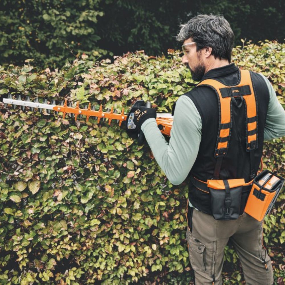 Attaching the harness is fast and efficient, thanks to the robust metal hooks designed for a secure connection. The durable construction ensures long-lasting reliability, allowing you to focus on your tasks without interruptions. With STIHL attachment clips on the vertical straps, you can easily attach smartphone or radio holders for added convenience.