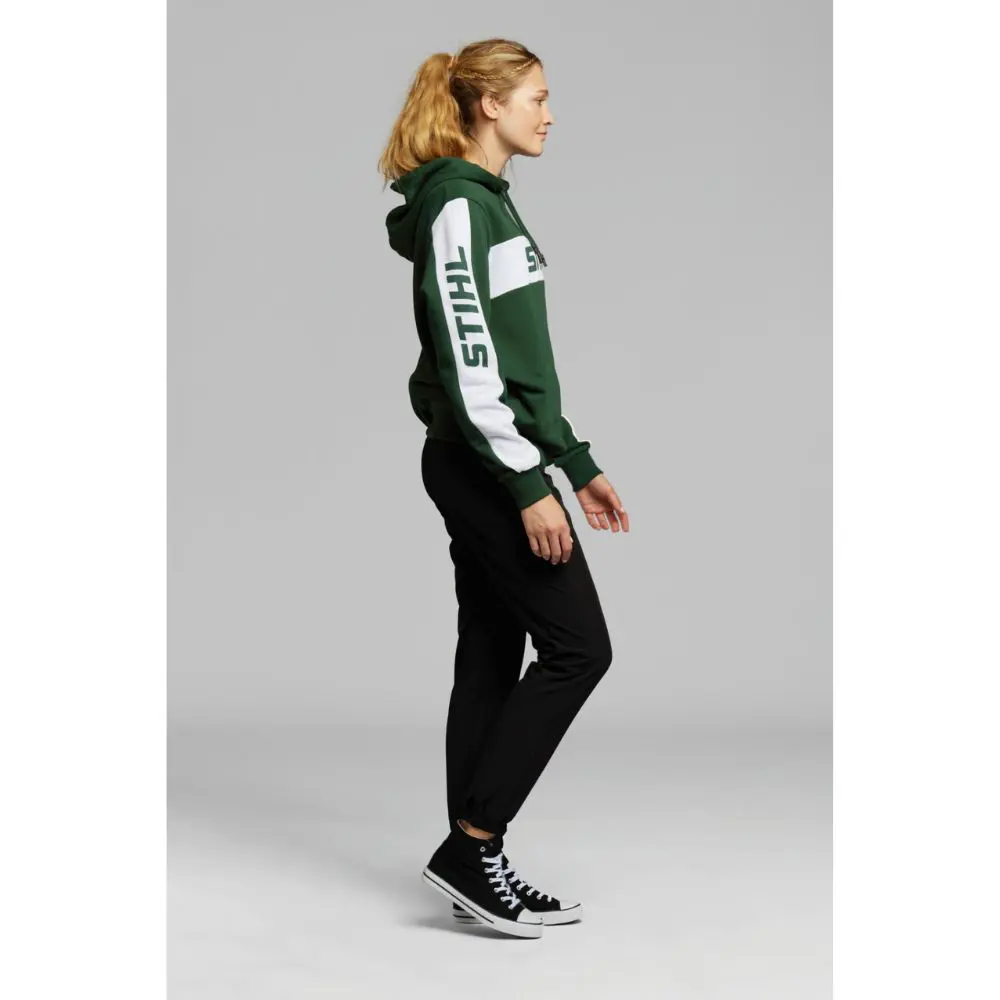 Moreover, the STIHL Green Colourblock Hoody shines in its versatility. Designed to complement various styles and fit seamlessly into different scenarios, from casual gatherings to more physically demanding tasks like gardening or undertaking DIY projects, this hoody pairs effortlessly with jeans, work trousers, or shorts. Its durable construction ensures it remains a staple in your wardrobe, capable of withstanding the demands of regular wear while retaining its distinctive look and feel.